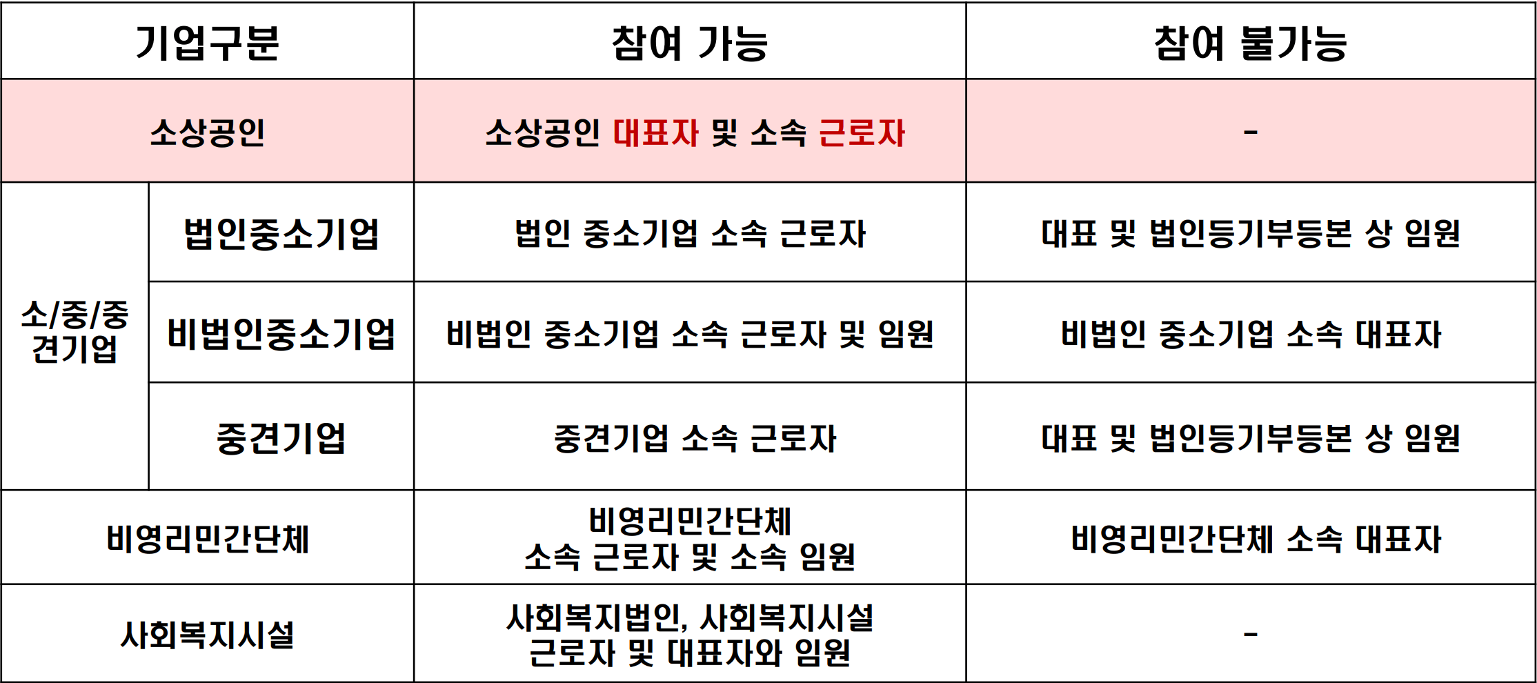- 소상공인: 사업자등록증, 중소기업확인서 또는 4대보험사업장가입자명부