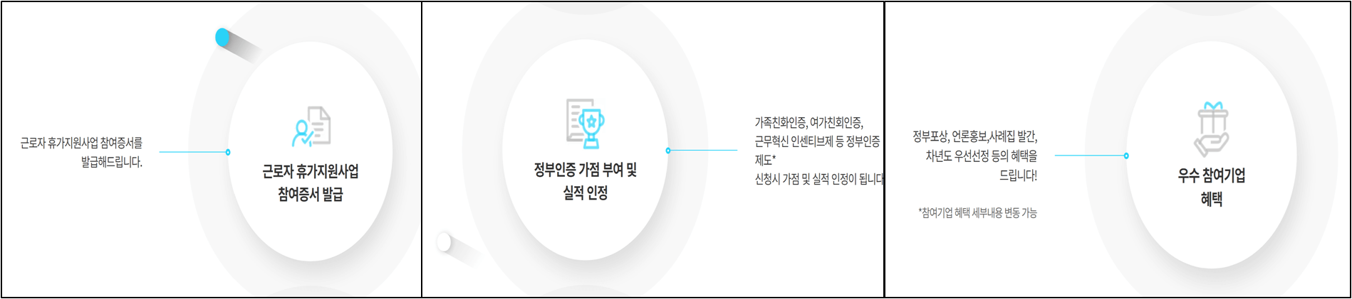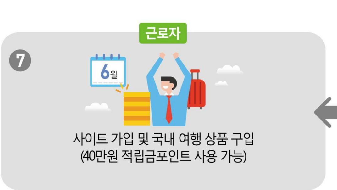 이에, 정부는 직장 내 자유로운 휴가문화 조성을 위해 기업과 정부가 함께 근로자의 국내여행 경비를 지원하는 근로자 휴가지원사업을 시행하고 있습니다.