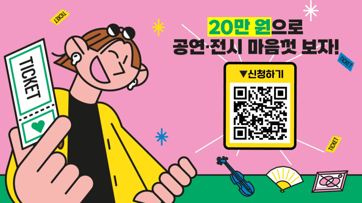 - 연간 공연예술분야 관람비 1인당 20만 원 문화이용카드 지급