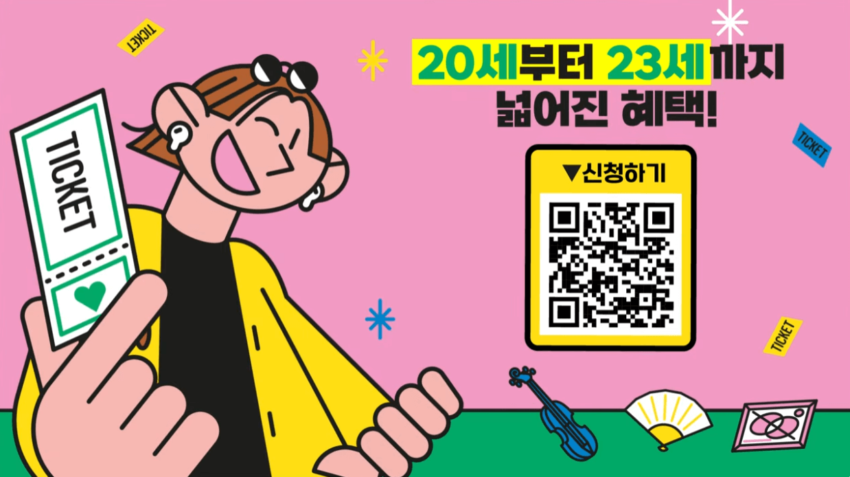 서울시에서 20세~23세 청년들에게 문화관람비로 20만원을 지원하니 해당되시는 분들은 기회를 놓치지 마시고 신청하시기 바랍니다.