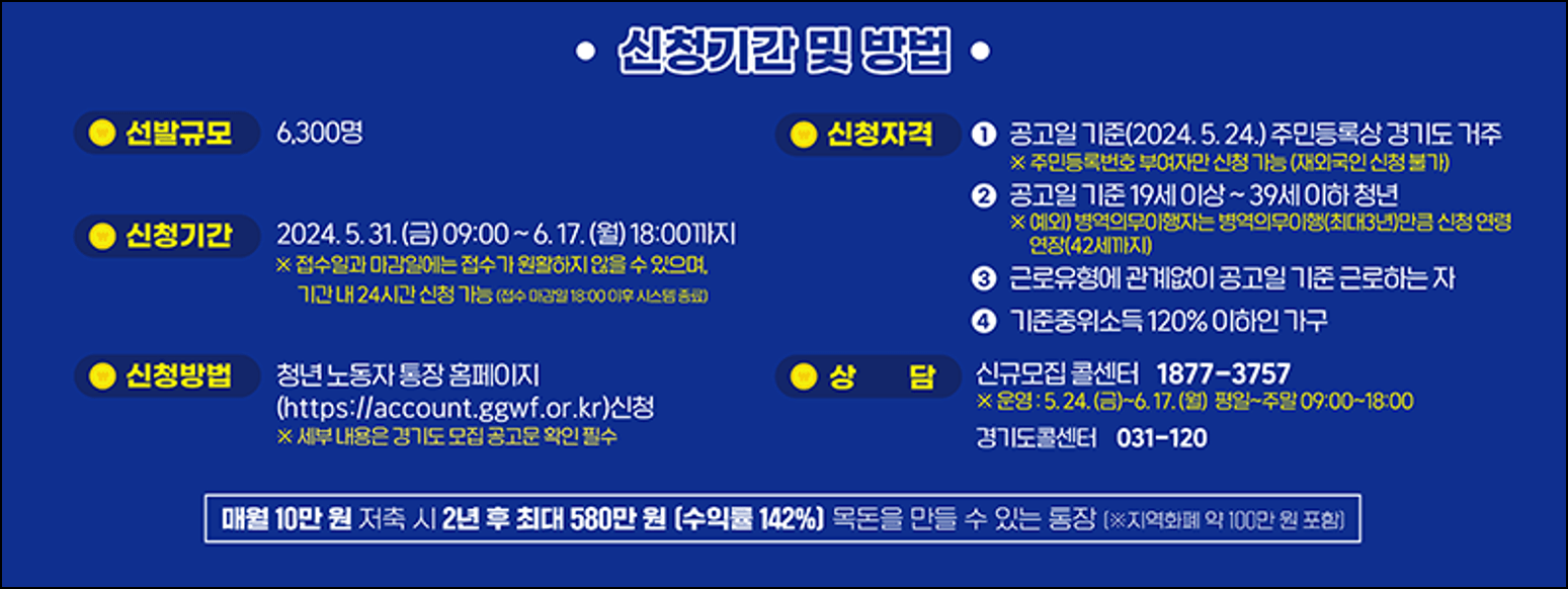 - 경기도 청년 노동자 통장 홈페이지에서 신청
