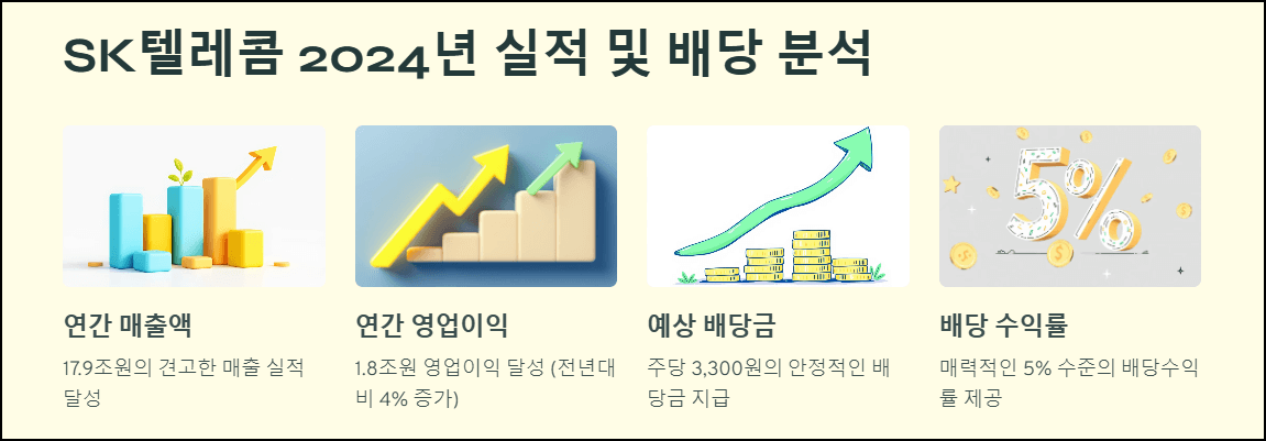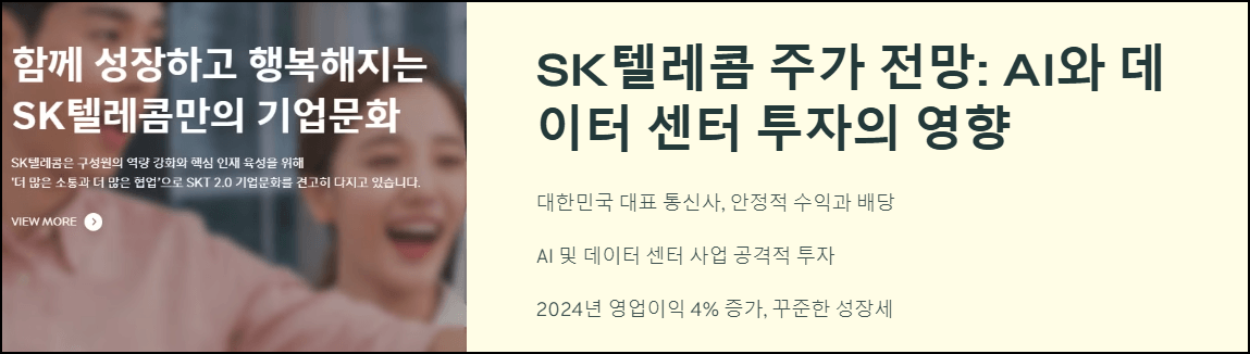 2024년 SK텔레콤은 연간 영업이익이 4% 증가하며 꾸준한 성장세를 이어가고 있습니다. 유무선 통신뿐만 아니라 AI, 클라우드, 데이터 센터 등 다양한 사업 부문에서 성장을 이뤄냈다는 점이 주목할 만한데요. 특히 배당 투자자들에게도 여전히 매력적인 종목으로 평가받고 있습니다.